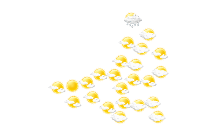 In Champotón strahlt morgens die Sonne und die Temperatur liegt bei 22°C. Im weiteren Tagesverlauf bilden sich vereinzelt Wolken und die Temperatur erreicht 30°C. Am Abend überwiegt in Champotón dichte Bewölkung aber es bleibt trocken und die Temperaturen liegen zwischen 25 und 26 Grad. In der Nacht ist es bewölkt, die Sterne sind nur vereinzelt zu sehen bei Tiefstwerten von 22°C.