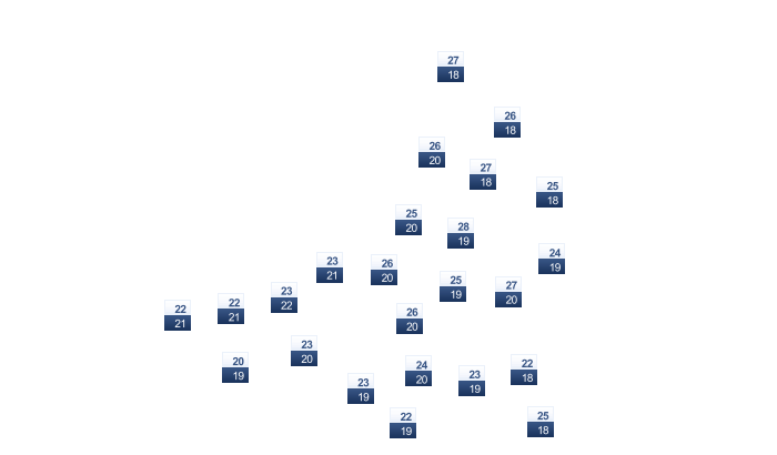 | 21 | 21 | 21 | 22 | 23 | 24 | 24 | 24 | 24 | 24 | 23 | 22 |