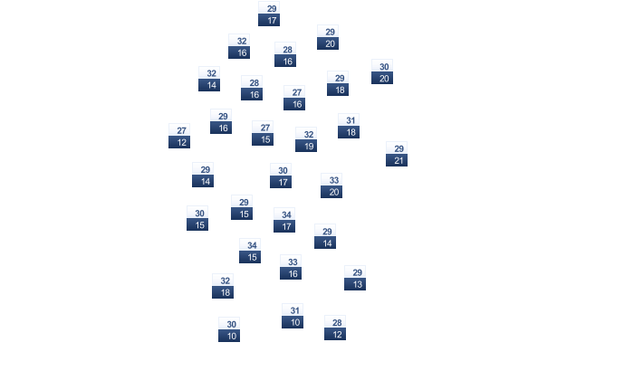 | 31 | 31 | 31 | 32 | 32 | 33 | 33 | 33 | 32 | 32 | 32 | 32 |