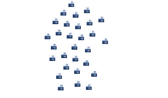 31 | 31 | 31 | 32 | 32 | 33 | 33 | 33 | 32 | 32 | 32 | 32 |