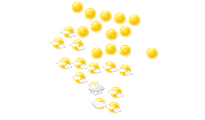 In Ciudad Lerdo gibt es morgens überwiegend blauen Himmel mit vereinzelten Wolken bei Werten von 17°C. Im weiteren Tagesverlauf strahlt von mittags bis zum Abend hin die Sonne bei Werten von 20 bis zu 31°C. Nachts gibt es keine Wolken und die Sterne sind klar zu erkennen bei Tiefstwerten von 15°C. Aus nordöstlicher bis nordwestlicher Richtung weht der Wind und erreicht dabei Geschwindigkeiten von 6 bis 18 km/h. Mit Böen zwischen 13 und 45 km/h ist zu rechnen.