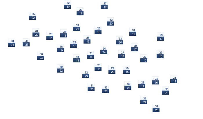 | 31 | 31 | 31 | 32 | 32 | 33 | 33 | 33 | 32 | 32 | 32 | 32 |