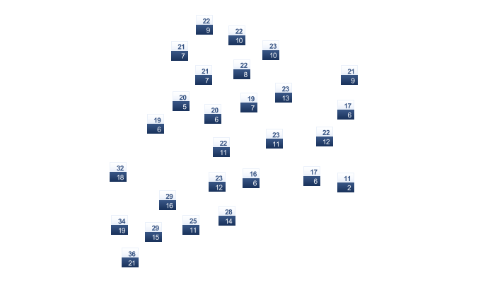 | 21 | 21 | 21 | 22 | 23 | 24 | 24 | 24 | 24 | 24 | 23 | 22 |