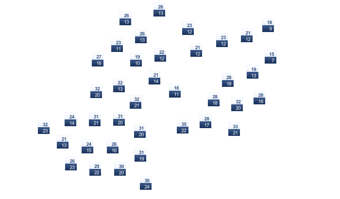 | 21 | 21 | 21 | 22 | 23 | 24 | 24 | 24 | 24 | 24 | 23 | 22 |