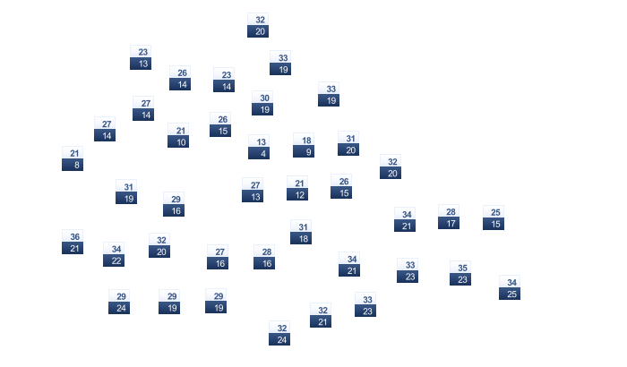| 31 | 31 | 31 | 32 | 32 | 33 | 33 | 33 | 32 | 32 | 32 | 32 |