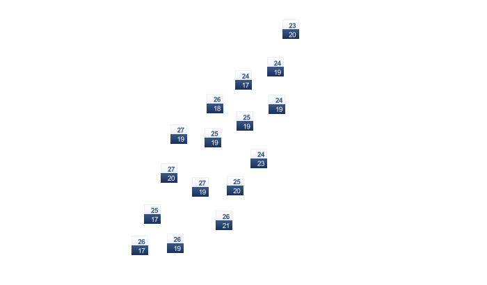 | 21 | 21 | 21 | 22 | 23 | 24 | 24 | 24 | 24 | 24 | 23 | 22 |