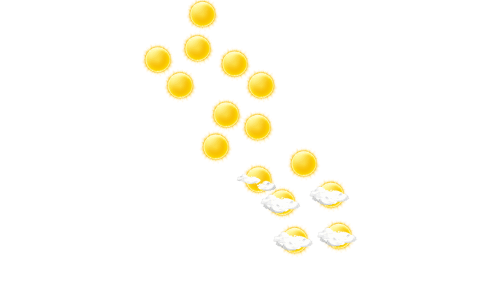 In Mazatlán kommt es von morgens bis zum Nachmittag zu einem Mix aus Sonne und Wolken bei Temperaturen von 23 bis 30°C. Abends gibt es in Mazatlán überwiegend blauen Himmel mit vereinzelten Wolken bei Werten von 24 bis zu 26°C. Nachts ist es wolkenlos und die Werte gehen auf 21°C zurück.