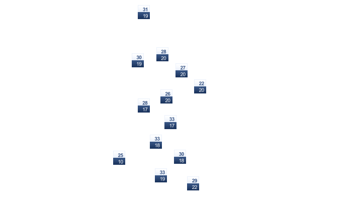 | 31 | 31 | 31 | 32 | 32 | 33 | 33 | 33 | 32 | 32 | 32 | 32 |
