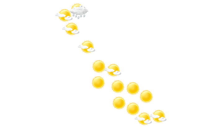 In Orizaba gibt es am Tag einen wolkenlosen Himmel bei Temperaturen von 15 bis 28°C. Nachts ist es wolkenlos bei Werten von 18°C.