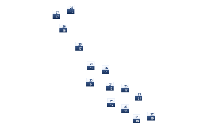 | 21 | 21 | 21 | 22 | 23 | 24 | 24 | 24 | 24 | 24 | 23 | 22 |
