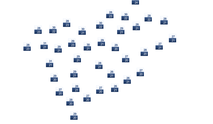| 21 | 21 | 21 | 22 | 23 | 24 | 24 | 24 | 24 | 24 | 23 | 22 |