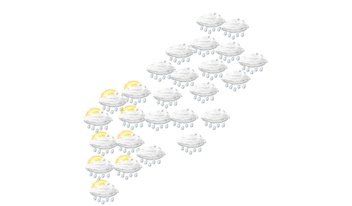 In La Condamine bleibt der Himmel morgens grau und es regnet bei Temperaturen von 16°C. Gegen später zeigt sich die Sonne nur vereinzelt bei sonst wolkigem Himmel und die Temperaturen erreichen 18°C. Abends ist es in La Condamine leicht bewölkt bei Temperaturen von 16 bis 17°C. Nachts ist es regnerisch und die Werte gehen auf 15°C zurück. Böen können Geschwindigkeiten zwischen 16 und 24 km/h erreichen.