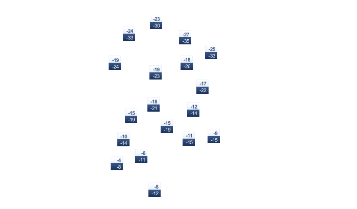 | -25 | -23 | -16 | -7 | 1 | 6 | 8 | 7 | 1 | -7 | -17 | -22 |