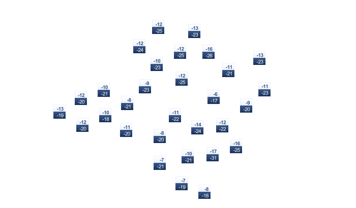 | -25 | -23 | -16 | -7 | 1 | 6 | 8 | 7 | 1 | -7 | -17 | -22 |