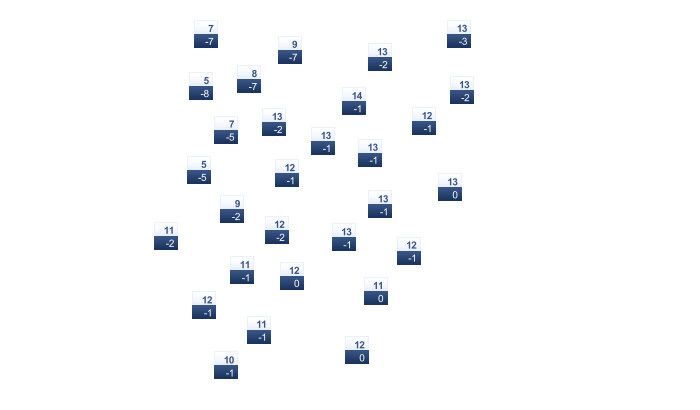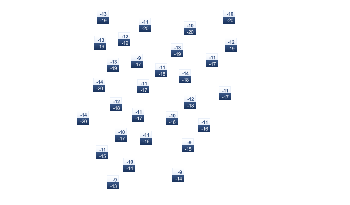 | -10 | -9 | -2 | 6 | 14 | 19 | 20 | 18 | 13 | 5 | -3 | -8 |
