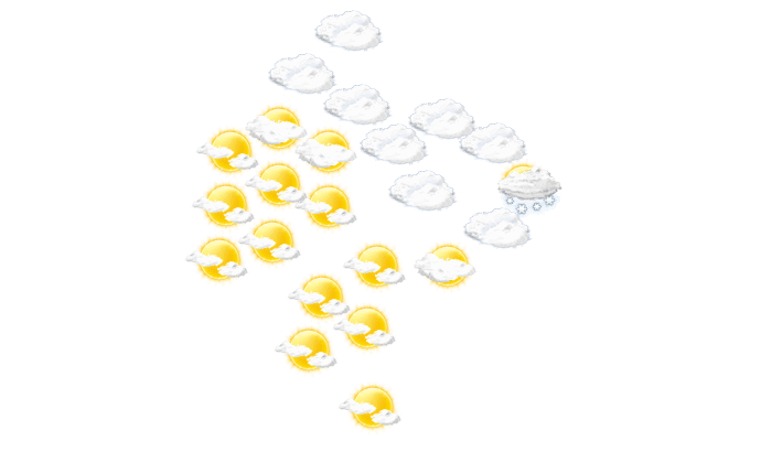 In Mokro bleibt morgens die Wolkendecke geschlossen bei Temperaturen von 2°C. Im weiteren Tagesverlauf sind am Nachmittag und am Abend Teile des Himmels mit Wolken bedeckt, die Sonne ist aber zwischendurch sichtbar bei Temperaturen von 1 bis 4°C. In der Nacht ist es überwiegend klar mit vereinzelten Wolken und die Werte gehen auf 0°C zurück. Mit Böen zwischen 16 und 26 km/h ist zu rechnen.