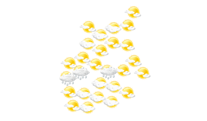 In Montepuez wird morgens die Sonne von einzelnen Wolken verdeckt bei Temperaturen von 20°C. Am Mittag bleibt der Himmel grau und es regnet bei Höchsttemperaturen bis zu 27°C. Abends gibt es in Montepuez keine Wolken bei Werten von 21 bis zu 22°C. In der Nacht ist es leicht bewölkt bei Werten von 20°C.