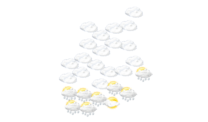 In Pemba fällt bis zum Nachmittag Regen bei Werten von 24 bis zu 27°C. Abends ist in Pemba der Himmel bedeckt bei Temperaturen von 24°C. In der Nacht bleibt es bedeckt bei einer Temperatur von 24°C.