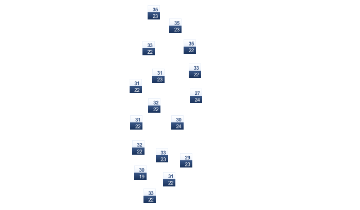 | 31 | 32 | 31 | 30 | 28 | 26 | 25 | 26 | 28 | 29 | 30 | 31 |