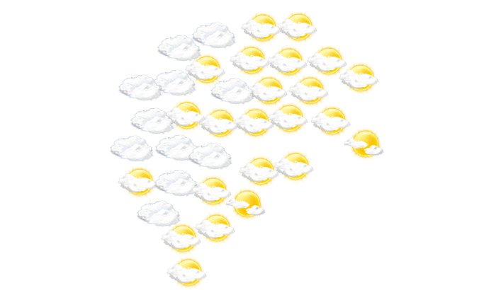 In Pebane wechseln sich tagsüber Wolken und Sonne ab bei Temperaturen von 24 bis 28°C. Nachts ziehen Wolkenfelder durch bei Tiefsttemperaturen von 24°C.
