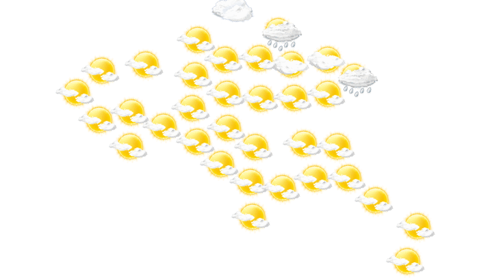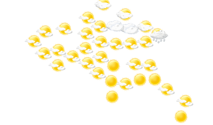 In Songo wird bis zum Nachmittag die Sonne von einzelnen Wolken verdeckt bei Temperaturen von 18 bis 30°C. Abends ziehen in Songo Wolkenfelder durch und die Temperaturen liegen zwischen 23 und 24 Grad. Nachts bilden sich vereinzelt Wolken bei Tiefsttemperaturen von 19°C.