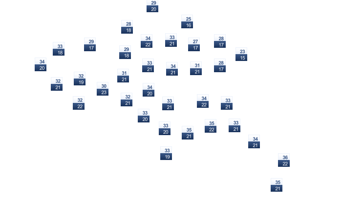 | 31 | 32 | 31 | 30 | 28 | 26 | 25 | 26 | 28 | 29 | 30 | 31 |