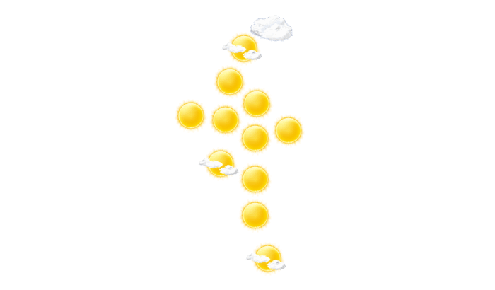 | 13 | 15 | 19 | 25 | 26 | 26 | 26 | 25 | 25 | 23 | 19 | 14 |