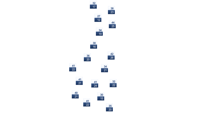 | 28 | 31 | 36 | 38 | 37 | 34 | 34 | 33 | 33 | 32 | 29 | 27 |