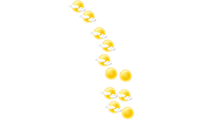 In Serti wird morgens die Sonne von einzelnen Wolken verdeckt und die Temperatur liegt bei 11°C. Darüber hinaus gibt es von mittags bis zum Abend hin ungestörten Sonnenschein und die Temperaturen liegen zwischen 14 und 25 Grad. Nachts gibt es einen wolkenlosen Himmel bei Werten von 12°C.