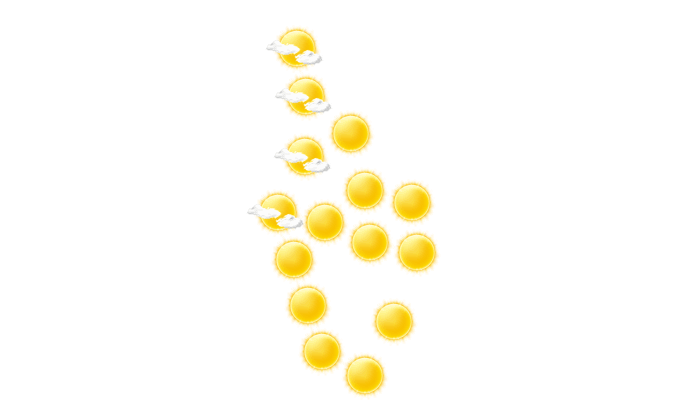 | 13 | 15 | 19 | 25 | 26 | 26 | 26 | 25 | 25 | 23 | 19 | 14 |