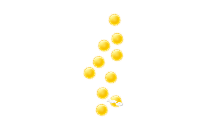 In Meiktila gibt es am Tag ungestörten Sonnenschein bei Temperaturen von 23 bis 37°C. In der Nacht ist es locker bewölkt bei Tiefsttemperaturen von 25°C.