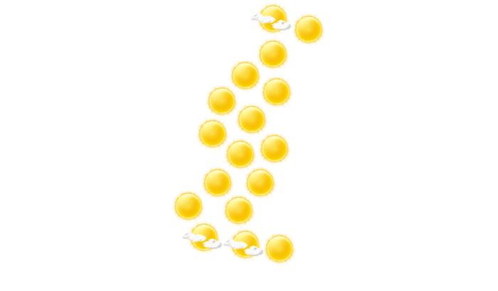 | 13 | 15 | 19 | 25 | 26 | 26 | 26 | 25 | 25 | 23 | 19 | 14 |