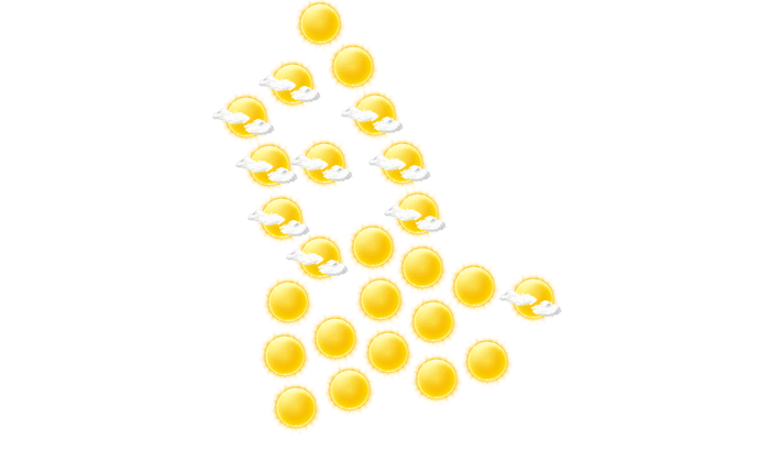 In Syriam bilden sich morgens leichte Wolken bei Temperaturen von 21°C. Im weiteren Verlauf des Tages gibt es vom Nachmittag bis abends strahlenden Sonnenschein bei Temperaturen von 26 bis 34°C. Nachts gibt es einen wolkenlosen Himmel bei Tiefstwerten von 22°C.