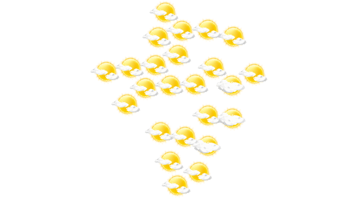 In Omaruru ist es tagsüber wolkig und die Temperaturen liegen zwischen 19 und 32°C. Nachts ist es bewölkt, die Sterne sind nur vereinzelt zu sehen bei einer Temperatur von 21°C.