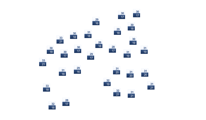 | 30 | 29 | 28 | 27 | 26 | 23 | 24 | 27 | 31 | 32 | 32 | 32 |
