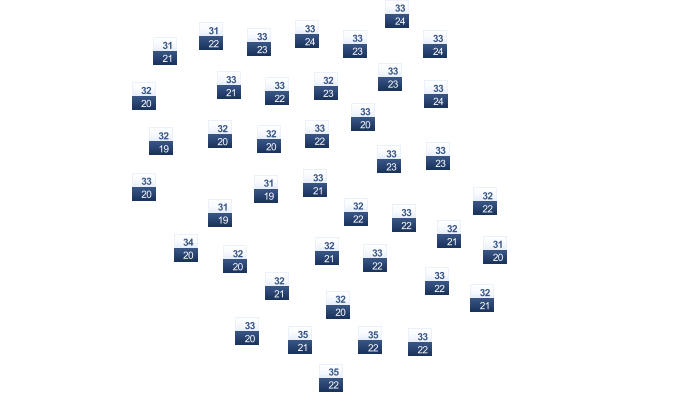 | 30 | 29 | 28 | 27 | 26 | 23 | 24 | 27 | 31 | 32 | 32 | 32 |