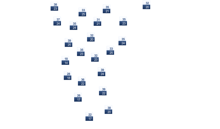 | 30 | 29 | 28 | 27 | 26 | 23 | 24 | 27 | 31 | 32 | 32 | 32 |