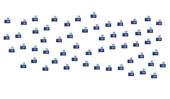| 30 | 29 | 28 | 27 | 26 | 23 | 24 | 27 | 31 | 32 | 32 | 32 |