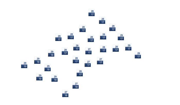 | 30 | 29 | 28 | 27 | 26 | 23 | 24 | 27 | 31 | 32 | 32 | 32 |
