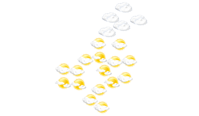 In Gisborne gibt es tagsüber keine Wolken, die Sonne scheint bei Werten von 15 bis zu 26°C. In der Nacht ist es wolkenlos bei Tiefsttemperaturen von 15°C.