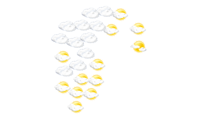 In Onekawa kann sich morgens die Sonne nicht durchsetzen und es ist wolkig bei Werten von 18°C. Im weiteren Tagesverlauf bleibt die Wolkendecke geschlossen und die Temperatur erreicht 25°C. Am Abend bilden sich in Onekawa vereinzelt Wolken bei Werten von 17 bis zu 24°C. Nachts ist es klar und die Luft kühlt sich auf 13°C ab.