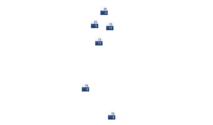 | 22 | 22 | 20 | 17 | 14 | 11 | 11 | 12 | 15 | 17 | 19 | 21 |