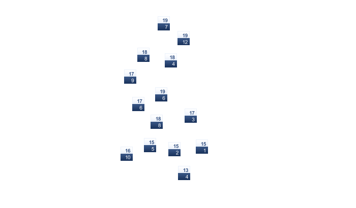 | 22 | 22 | 20 | 17 | 14 | 11 | 11 | 12 | 15 | 17 | 19 | 21 |