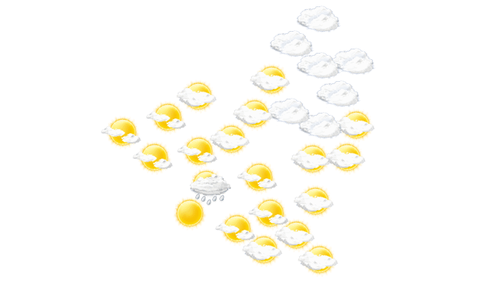 In León gibt es morgens einen wolkenlosen Himmel bei Werten von 21°C. Mittags bleibt die Wolkendecke geschlossen und die Temperaturen erreichen 34°C. Am Abend gibt es in León nur selten Lücken in der Wolkendecke und die Temperaturen liegen zwischen 24 und 27 Grad. In der Nacht verdecken einzelne Wolken den Himmel bei Tiefstwerten von 21°C.