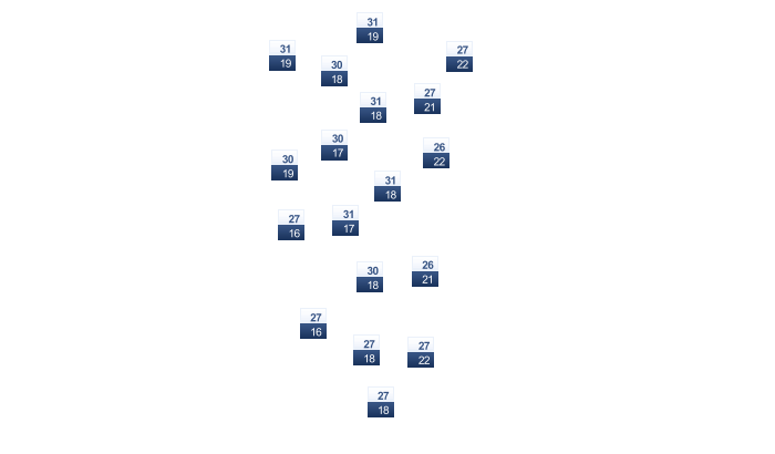 | 31 | 32 | 34 | 34 | 34 | 31 | 31 | 31 | 31 | 31 | 31 | 31 |