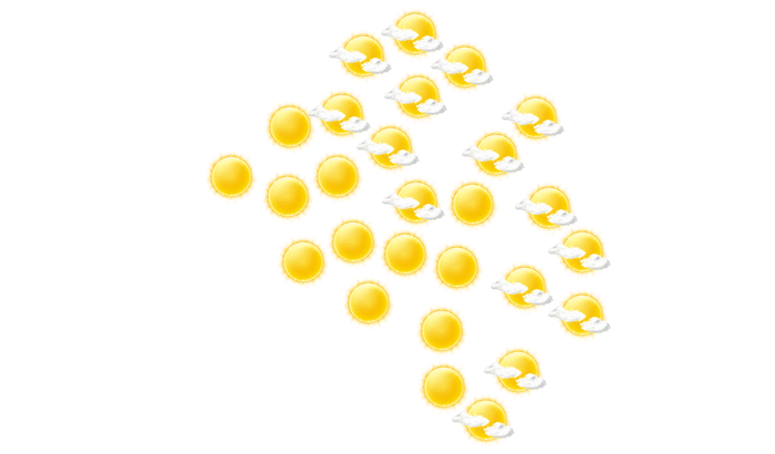 In San Marcos gibt es morgens einen wolkenlosen Himmel bei Werten von 22°C. Im weiteren Tagesverlauf kommt es vom Nachmittag bis abends zu einem Mix aus Sonne und Wolken bei Werten von 23 bis zu 33°C. Nachts ist es bewölkt, die Sterne sind nur vereinzelt zu sehen und das Thermometer fällt auf 21°C.