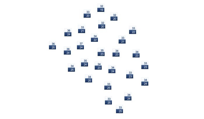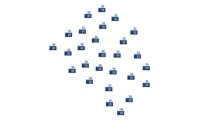 | 20 | 21 | 22 | 23 | 23 | 23 | 23 | 22 | 22 | 22 | 21 | 20 |