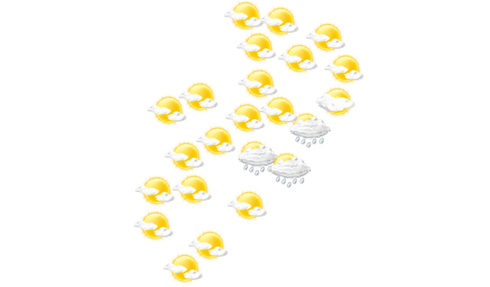 In Mateare zeigt sich morgens die Sonne nur vereinzelt bei sonst wolkigem Himmel bei Temperaturen von 23°C. Im weiteren Tagesverlauf ist es mittags und auch abends wolkenlos und die Temperaturen liegen zwischen 24 und 29 Grad. In der Nacht bedecken einzelne Wolken den Himmel bei Tiefstwerten von 23°C.