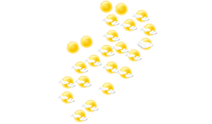 In Mateare gibt es bis zum Nachmittag keine Wolken, die Sonne scheint bei Werten von 23 bis zu 30°C. Abends ist es in Mateare vielfach wolkig und die Temperaturen liegen zwischen 24 und 26 Grad. In der Nacht sind Teile des Himmels mit Wolken bedeckt und die Luft kühlt sich auf 22°C ab.