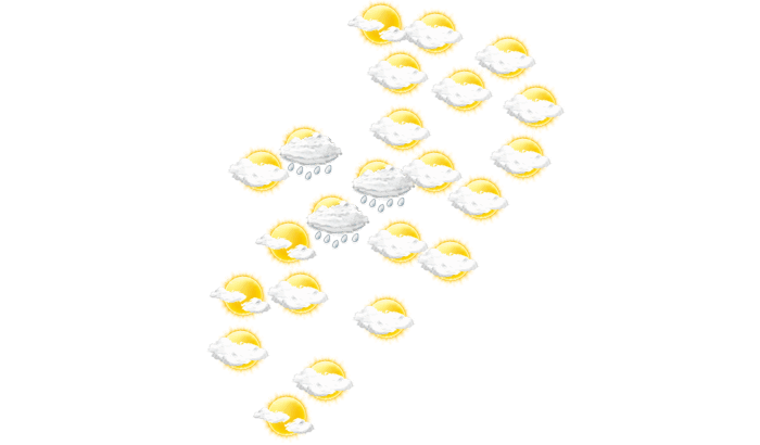 In Mateare gibt es am Morgen eine Mischung aus Sonne und Wolken bei Temperaturen von 22°C. Im weiteren Tagesverlauf sollte vom Nachmittag bis abends der Schirm nicht vergessen werden, da es regnet bei Werten von 24 bis zu 30°C. In der Nacht ist ein Blick auf die Sterne nur vereinzelt bei sonst wolkigem Himmel möglich bei Tiefsttemperaturen von 23°C.